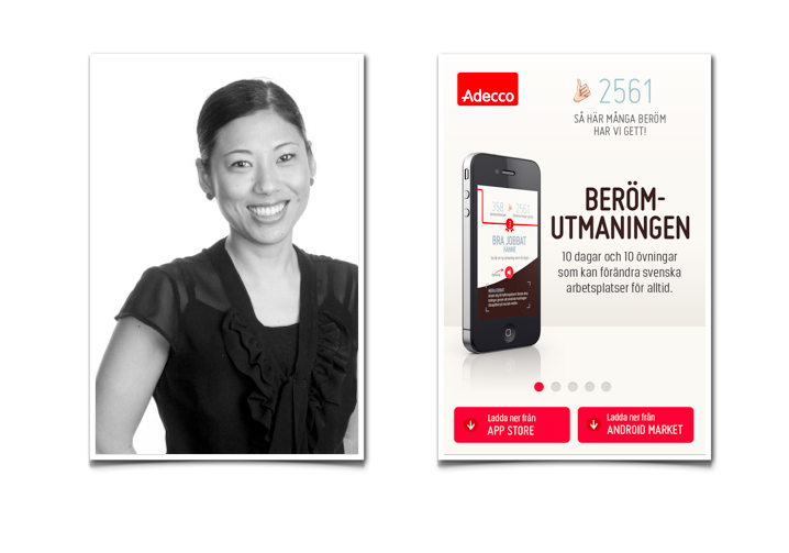Vi svenskar är generellt ganska dåliga på att visa uppskattning och ge varandra positiv feedback på jobbet. Vi på Adecco har under det senaste 1,5 året jobbat mycket med Employer branding och startat en rad projekt för att våra medarbetare ska må bra och trivas på jobbet. Förra hösten lanserade vi en träningsapp där man registrerar fysisk aktivitet som ett led i en friskvårdssatsning. Den blev oerhört uppskattad bland både medarbetare och kunder. I år ville vi spinna vidare på temat må bra och började därför undersöka vad som mer får människor att trivas på sina arbetsplatser. Beröm och positiv feedback visade sig i flertalet studier ge positiva effekter som ökad trivsel, lägre sjukfrånvaro och högre lönsamhet. Samtidigt såg vi att många upplevde det som svårt att både emot och ge beröm. Säkert beror det på en innebyggd jante-kultur och att man är ovan. Därför utvecklade vi en ny träningsapp. Men den här gången i den ädla konsten att ge och ta emot positiv feedback.