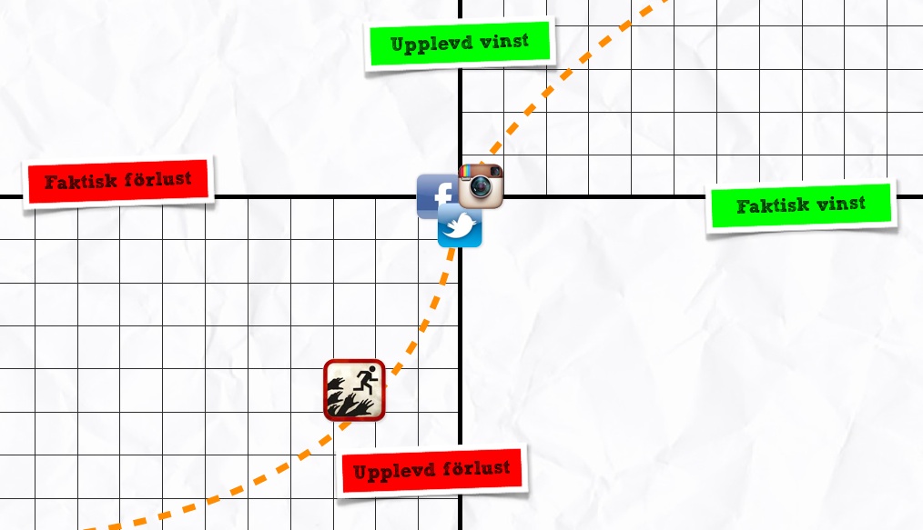 1. Prospektteorin: Ovan ser du den ikoniska prospektgrafen som talar om hur människor ser på vinster och förluster. Du som läser bloggen ofta kanske tycker att jag tjatar mycket om denna graf men jag tycker den är så fantastisk och applicerbar på så mycket så jag kommer nog fortsätta att nämna den i år framöver. På x-axeln har vi det faktiska värdet av en vinst eller en förlust och på y-axeln det subjektiva värdet vi upplever vid en vinst eller förlust. Som ni ser så går kurvan brant ner i början men planas sedan ut. Detta innebär att ökningen av det subjektiva värdet av en förlust minskar ju större förlusten blir. En förlust på 1000 kronor upplevs alltså som värre för den som inte gjort någon tidigare förlust än för den som dragit på sig förluster på 10 000-tals kronor. Att gå från 0 till -1000 känns alltså “mer” än det gör att gå från -10 000 till 11 000. Översätter vi detta till app-språk så känns 55 kronor extremt dyrt eftersom de flesta av oss har noll eller sju kronor som referenspunkt för en app. Att konkurrera med produkter som är gratis är en riktigt svår uppgift eftersom steget från noll kronor till x kronor innebär en riktigt stor (mental) förlust.