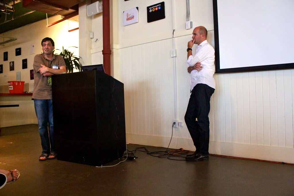 En ögonblicksbild från Startup-Onomics-konferensen i San Francisco: Professor Dan Ariely frågar ut Wireds Chris Anderson efter hans föreläsning om visualiserad hälsodata och beteendeförändring.