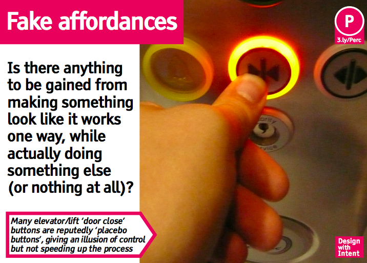 Detta är exempel på “fake affordances”, en av forskaren Dan Locktons 101 designprinciper för beteendeförändring.
