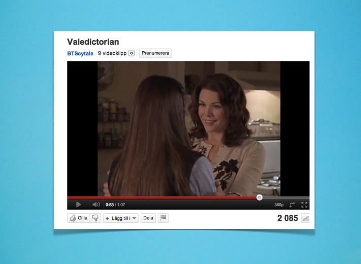 I klippet möter vi en stressad Rory, som är i full färd med att plugga inför sin sluttentamen på universitetet. Mamma Lorelai har just upptäckt att dottern blivit utnämnd till valedictorian, årets topppstudent. Att, som Rory, bli utvald till “valedictorian” på en statusskola som Yale, är ett betydelsefullt hederutnämnande. Lorelai frågar skämtsamt, på sitt typiska vis, om det stämmer att Rory fått utnämnandet eller om det är ett elakt skämt från hennes kamrater. När Lorelai märker att Rory är alldeles uppstressad, hanterar hon det lugnt och accepterande. Hon säger kärleksfullt till Rory att hon kommer låta henne flippa ur, och plugga som en galning. Samtidigt betonar Lorelai att de tillsammans ska fira Rorys examen och hedersutnämnandet riktigt ordentligt, så snart tentan är över. Hon påminner dottern om att det hon hittills gjort, är en fantastisk prestation.